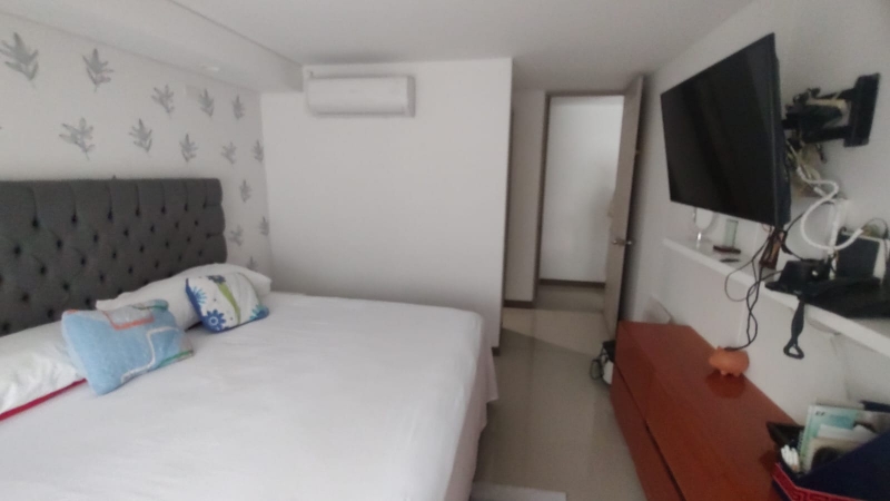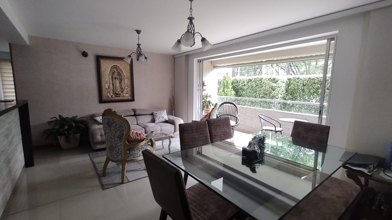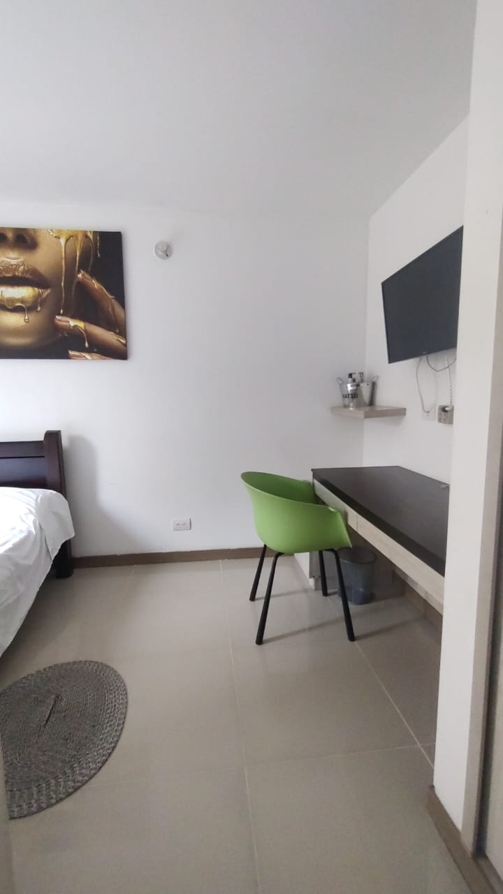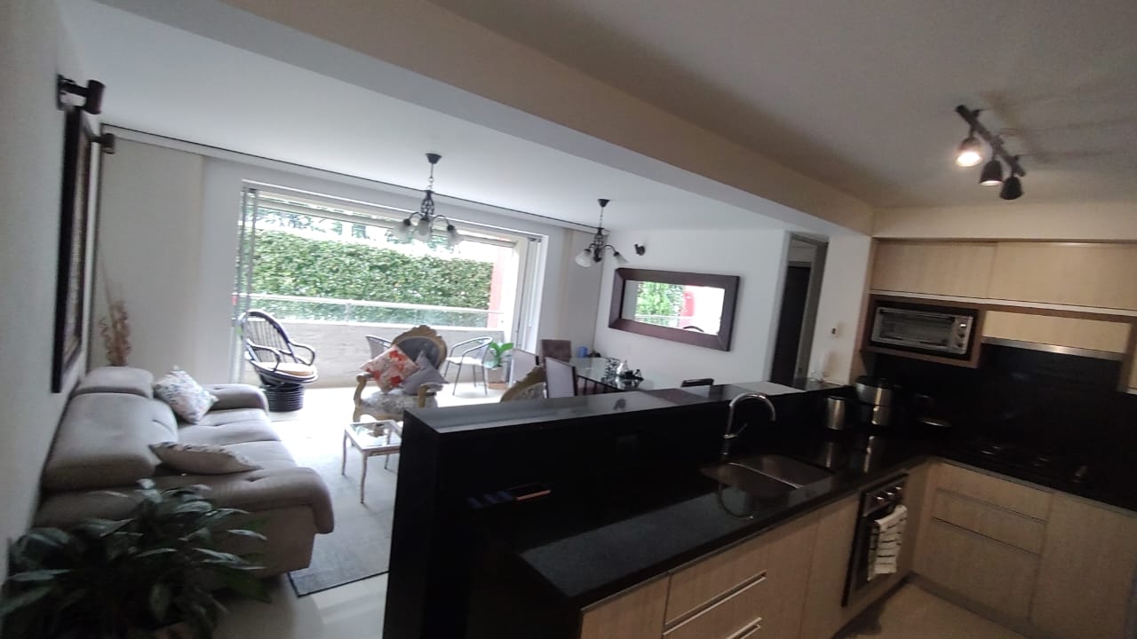 Exclusivo apartamento con una superficie de 110 metros cuadrados, sector arborizado exclusivo sector de ingresando encontramos gran sala comedor con gran balcón e integrada a la cocina tipo americana y espacio de zona de ropas y espacio de alcoba de servicio con baño privado, baño social, a un extremo del ala derecha encontramos la habitación principal amplia en sus dimensiones con baño Vestier y saliendo de la habitación closet de linos y a la ala izquierda encontramos una sala de televisión con una habitación amplia con closet y baño privado y otra habitación amplia con su baño privado. El apartamento está totalmente equipado amueblado en todos sus espacios brindando un confort para llegar a disfrutar de una gran estadía en familia.