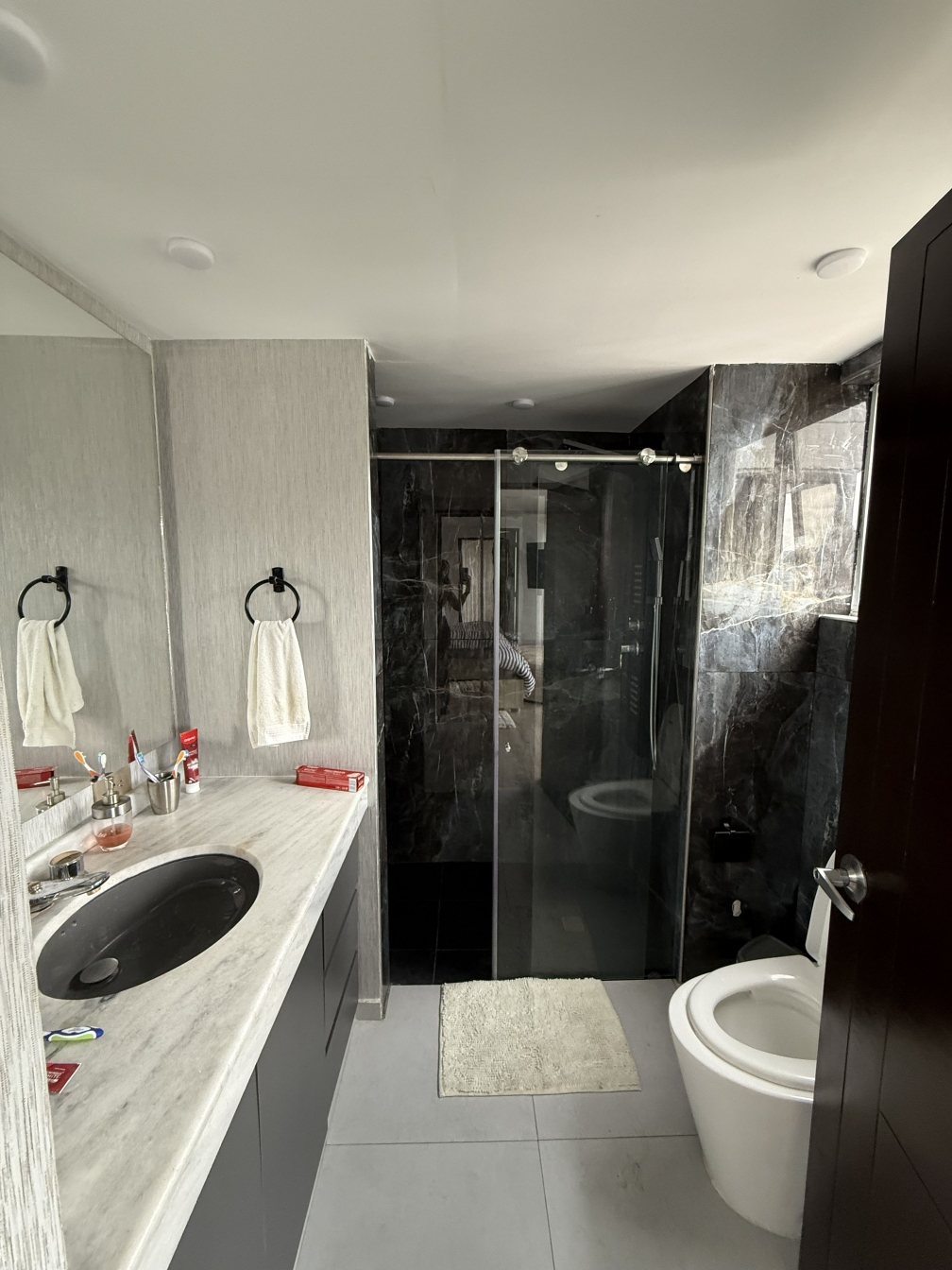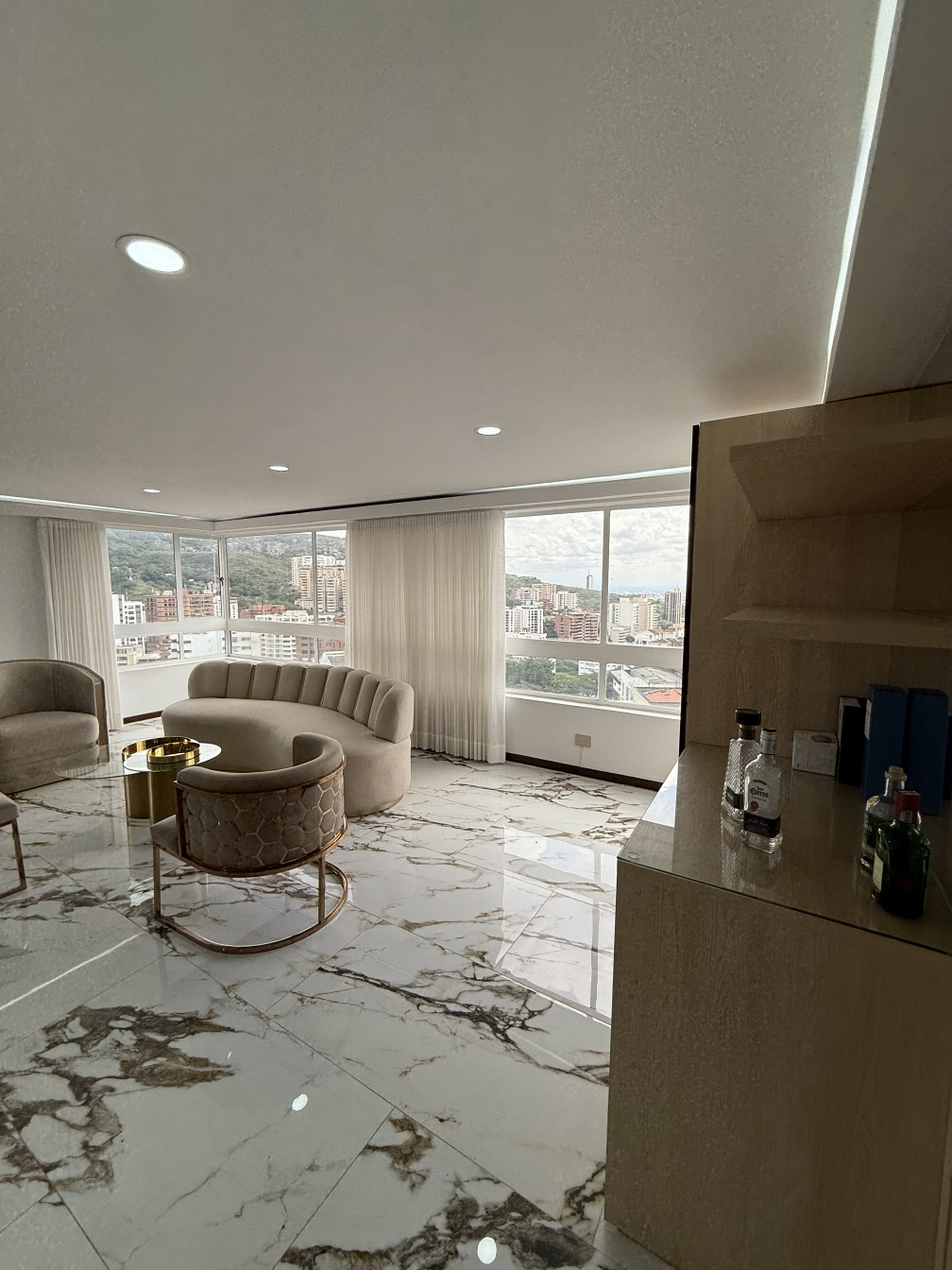 Apartamento en Santa Teresita, ubicado en el edificio Maitama, con 270 metros cuadrados totalmente remodelados para estrenar. Cuenta con tres alcobas, cuatro baños, dos vestieres, una sala comedor amplia, sala auxiliar, estudio y cocina integral. Además, dispone de un cuarto de servicio con baño, zona de lavado, dos parqueaderos y un depósito.